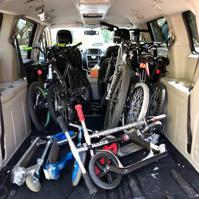 Here are the bikes and scooters, loaded up and ready to be dropped off at La Dolce Velo.